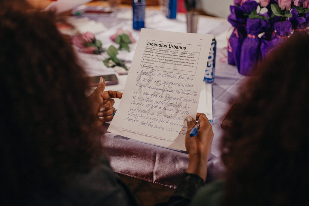 “Se houver outro tipo de desastre, como desmoronamento, incêndio ou vazamento de gás, agora já tenho uma noção de como ajudar as pessoas a se prevenirem ou saírem do local em segurança”, afirmou Sônia Mariza Ribeiro Martins, liderança do território Cruzeiro do Sul, em Porto Alegre.