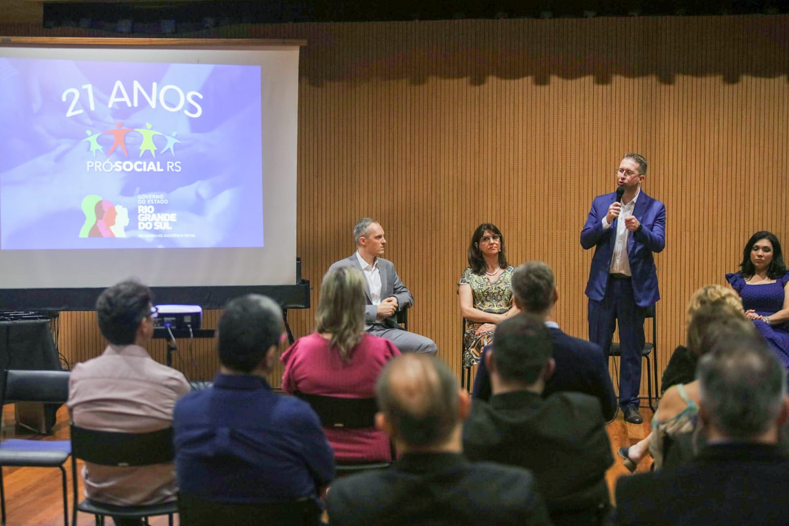 “É uma honra representar a Fundação em uma data tão significativa e emocionante para nós. Hoje, estamos celebrando 21 anos do Pró-Social, uma política pública inovadora e protagonista”, salientou Marc Deitos no evento realizado na Sala de Música do Multipalco Eva Sopher, da Fundação Theatro São Pedro.
