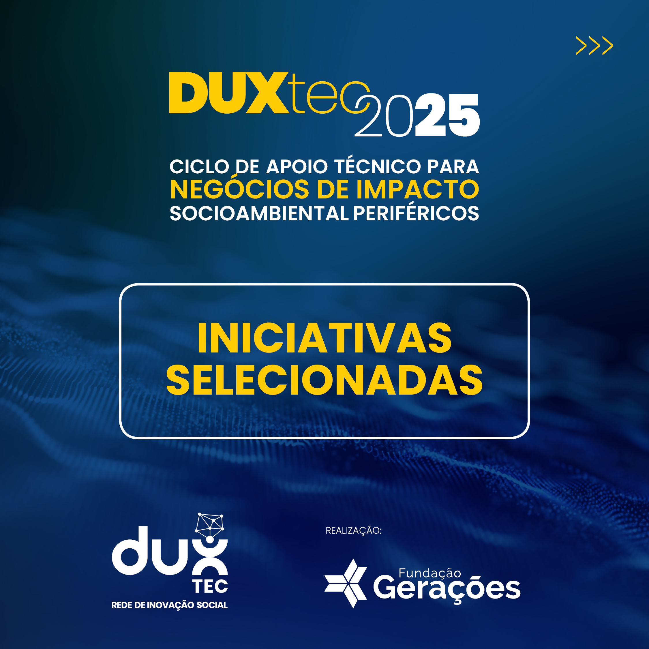 Confira os negócios de impacto selecionados para o ciclo de apoio técnico do DUXtec 2025. Cada empreendimento terá acesso a assessoria especializada na área indicada no momento da inscrição, de forma customizada às suas necessidades e perfil. O primeiro encontro com o grupo será no dia 30/09.